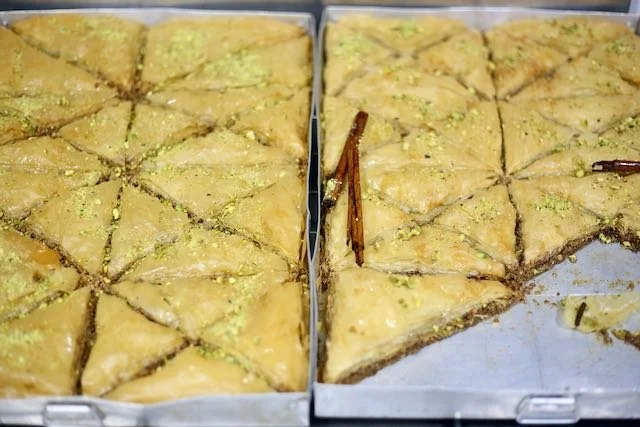 Ahora pasemos a los postres. La gastronomía, quizás más influenciada sobre la griega, es la otomana. Puedes probar el baklava en las pastelerías y restaurantes, no solo en Grecia, sino también en muchos otros países de esta parte del mundo. El baklava griego es un postre increíblemente sabroso con capas de filo, nueces (y otros frutos secos) y almíbar de miel que te hace sentir como si estuvieras probando un pedacito de Grecia en cada mordisco, el secreto en la canela.