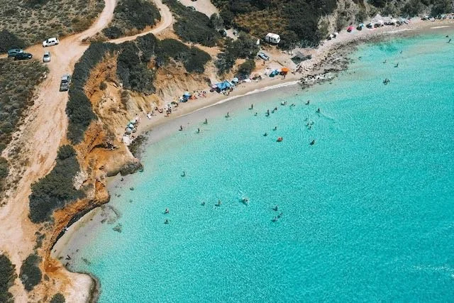 En la isla de Ios, Playa Manganari es una de las más hermosas del mar Egeo. Con aguas turquesas y un ambiente relajado, es ideal para aquellos que desean escapar de las multitudes. Sus tranquilas aguas hacen de esta playa el lugar perfecto para disfrutar de un día de sol.