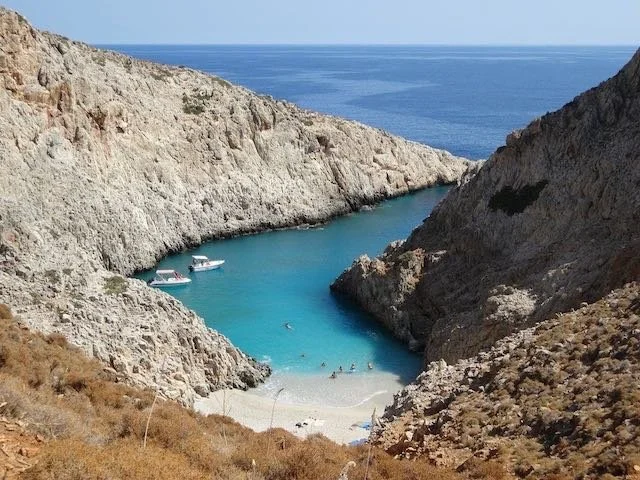 Seitan Limania, en Creta, es famosa por su playa de guijarros blancos y aguas profundas rodeadas de imponentes acantilados. Aunque el acceso no es fácil (la carretera es empinada y estrecha), su belleza indiscutible compensa cualquier esfuerzo.