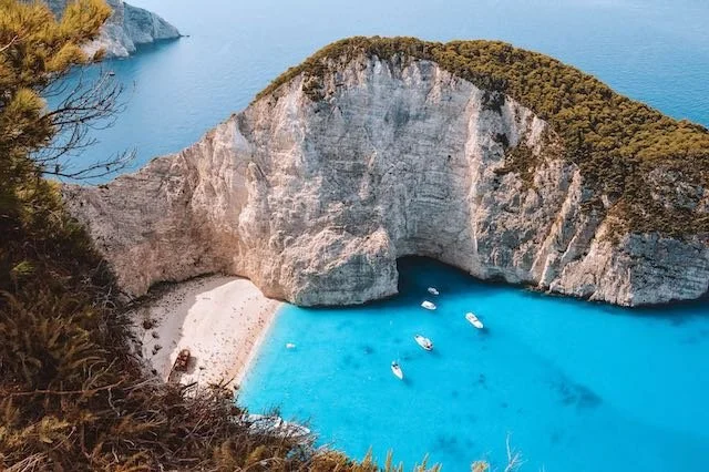 Probablemente una de las playas más conocidas del mundo, Navagio se encuentra en la isla de Zante y es famosa por el barco varado en su arena, un antiguo naufragio que le da su nombre. Rodeada de acantilados escarpados, solo se puede acceder por barco, lo que añade un toque de exclusividad a la experiencia.
