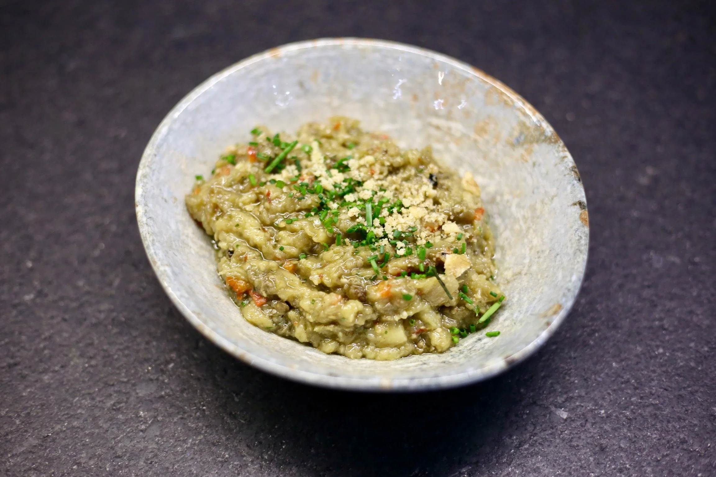 Descubre cómo preparar Melitzanosalata, la crema griega de berenjenas y pimiento asado, en esta receta auténtica. También disponible en Kuzina, tu restaurante griego en Valencia.
